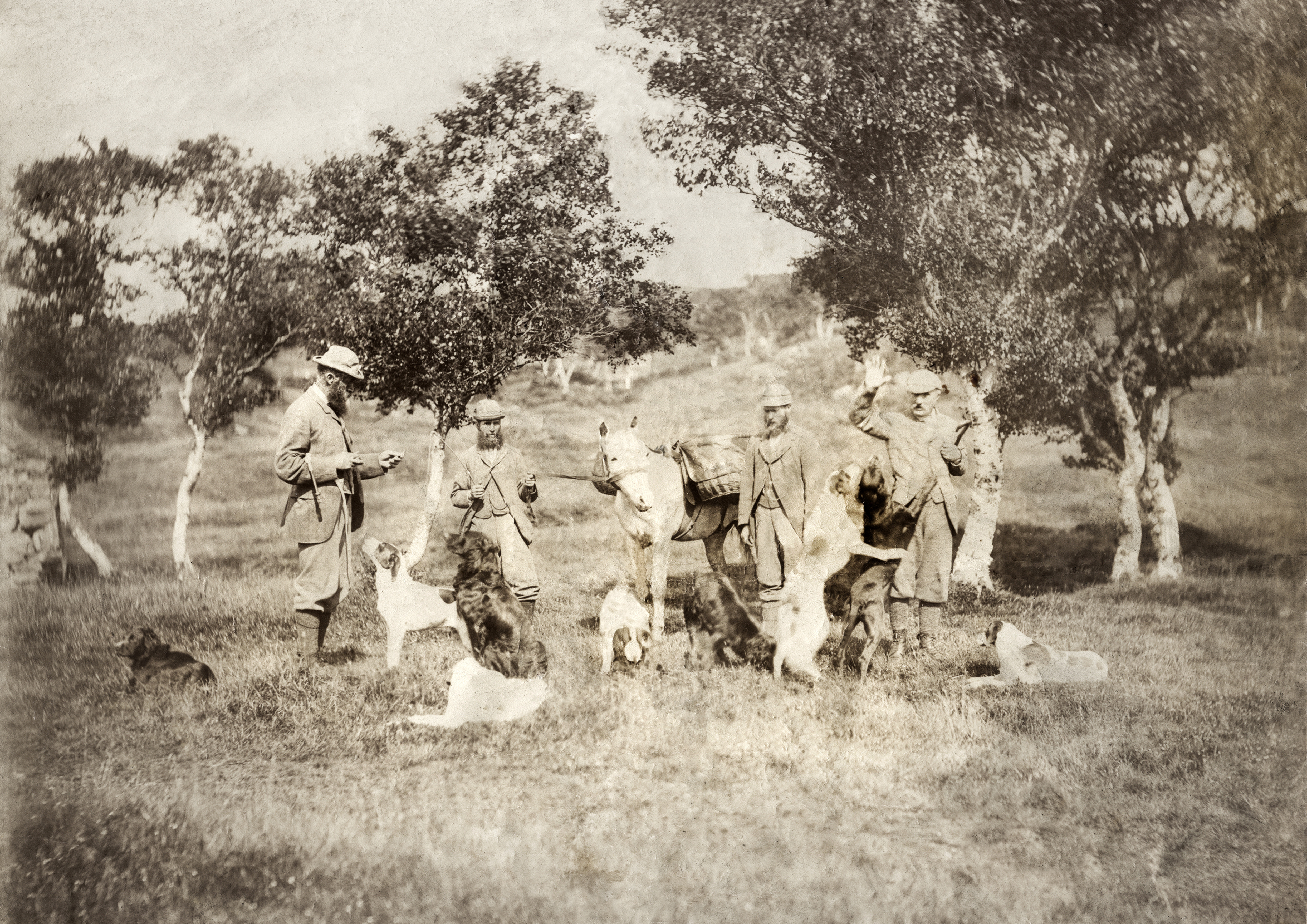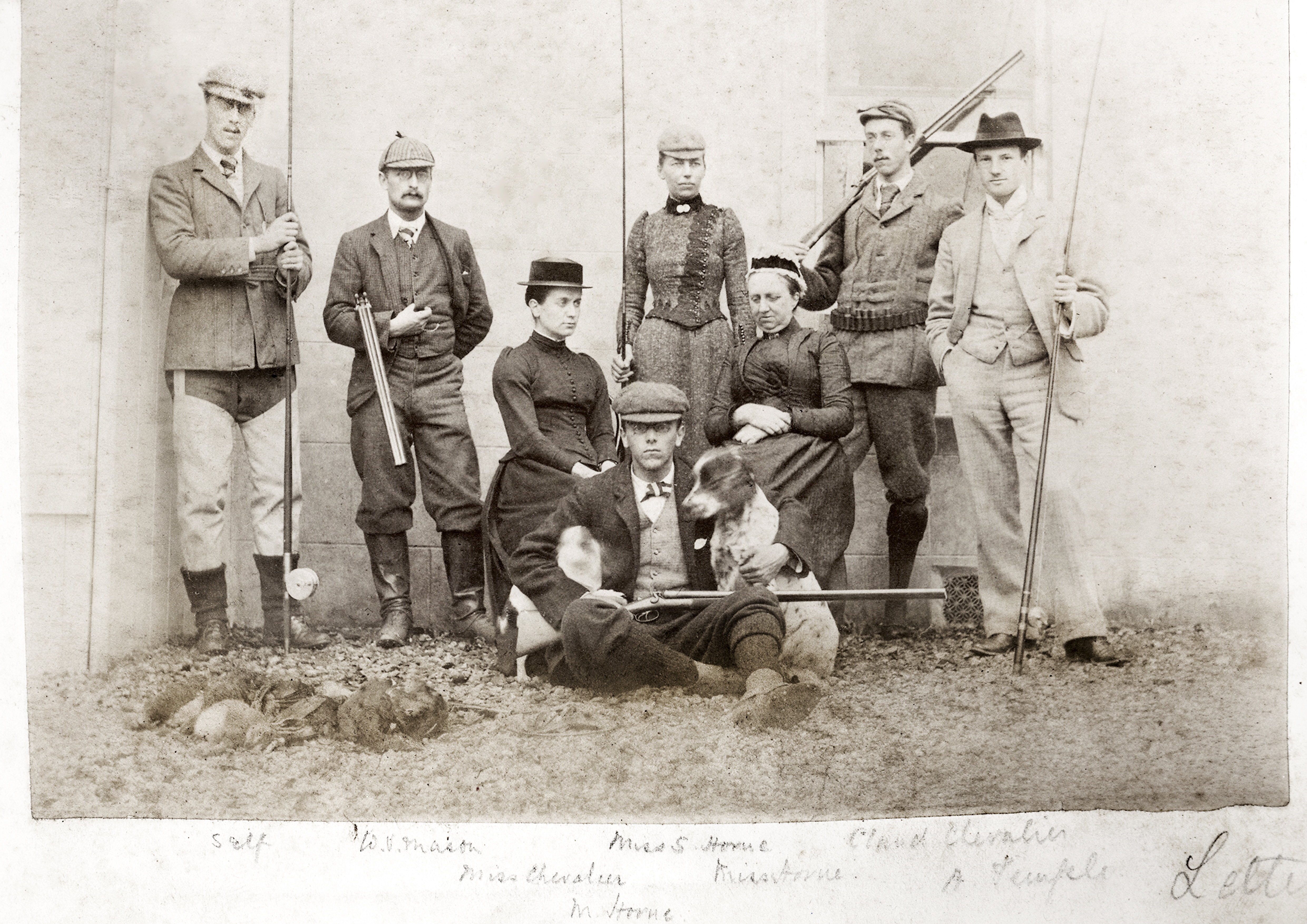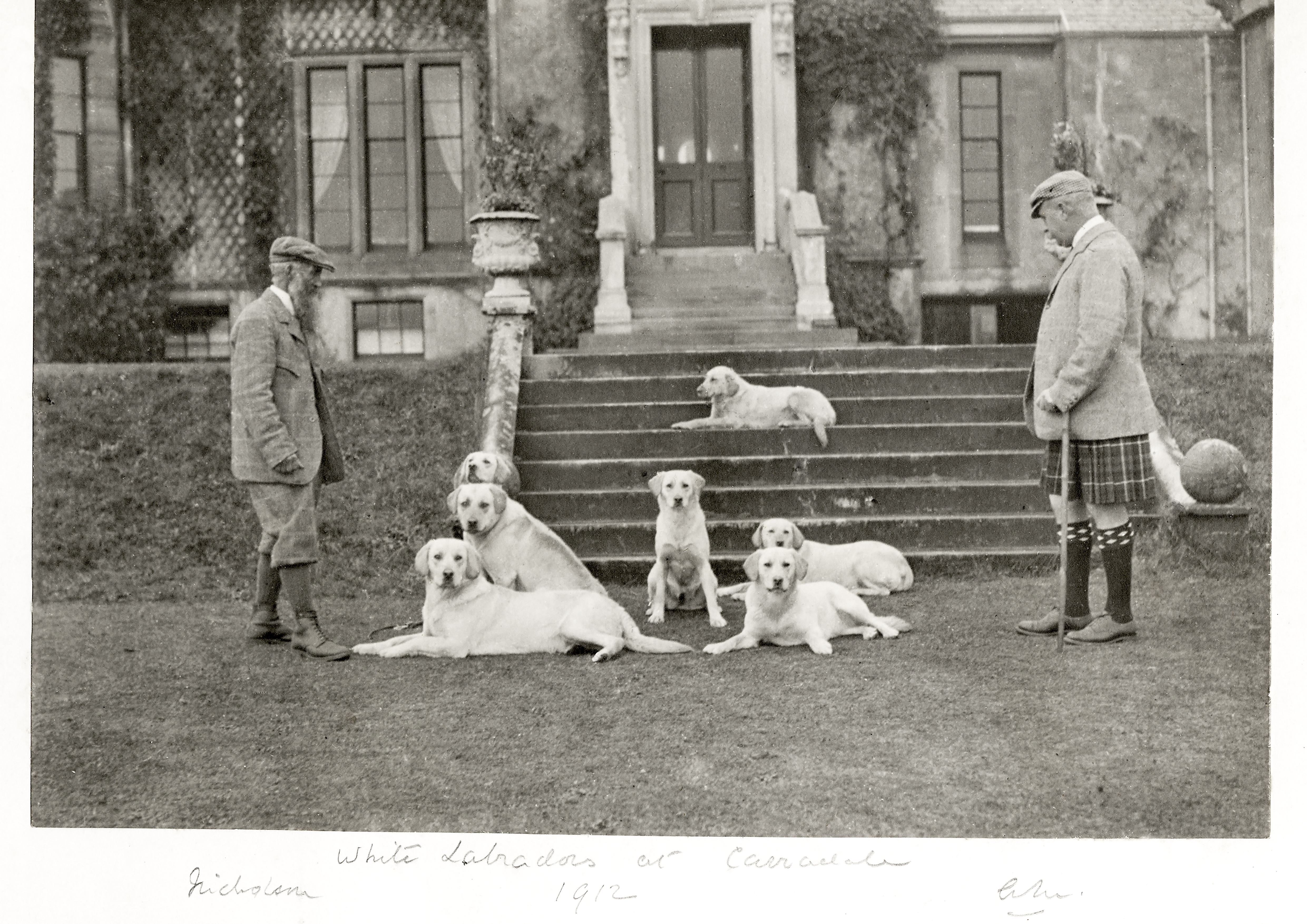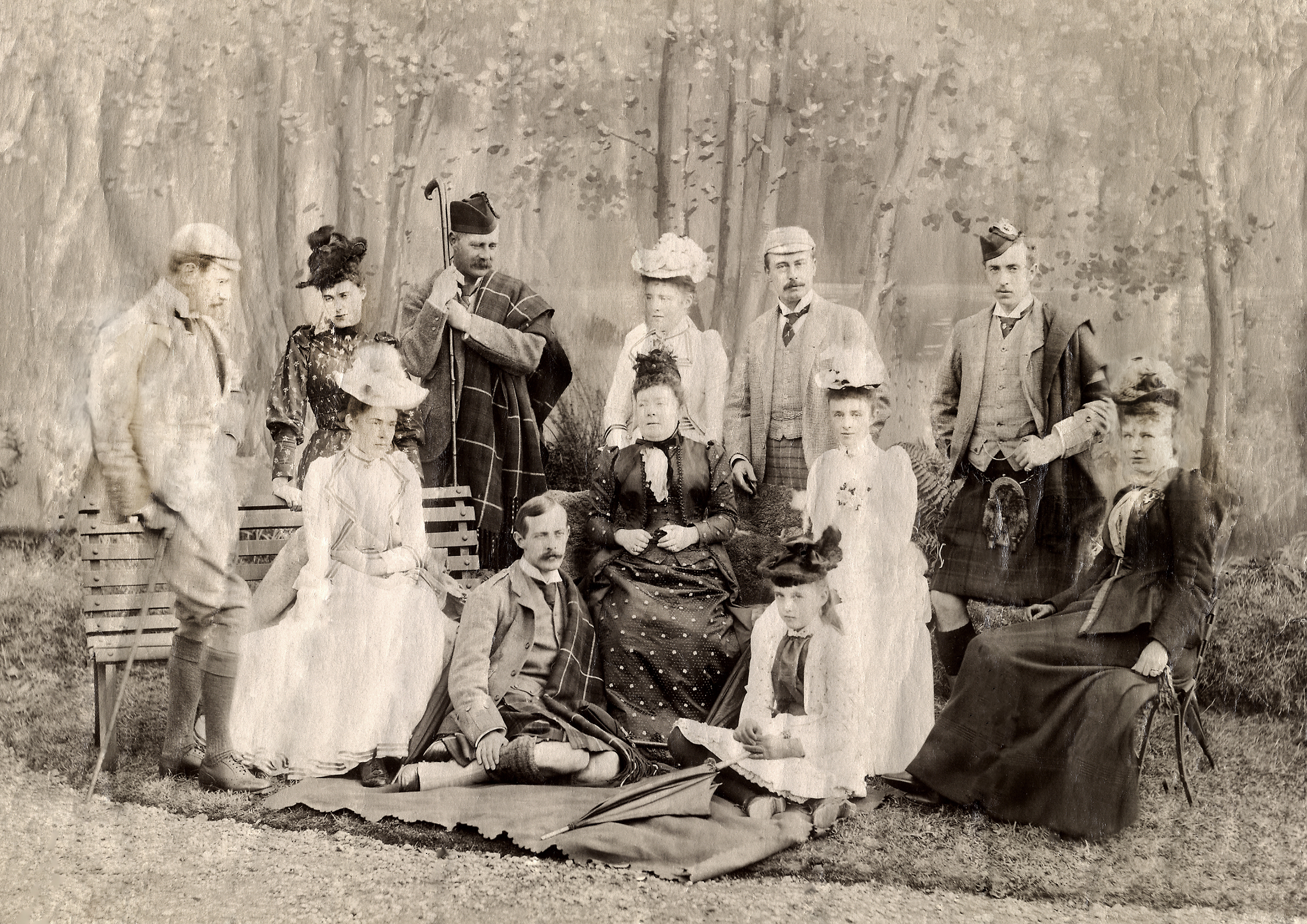 Theses black and white pictures hang at the pub and were found in an old family photo album by the owner Doune Mackenzie-Francis, they feature highland life, from a bygone time as Doune hails from Inverness-shire. They are mainly of her Great Uncle Austin, who lived at Carradale on the West Coast. Austin also happened to own the portrait that hangs in the other room of the pub. We don't know who the portrait is of, we know the portrait is by Herman G Herkomer, painted in 1894 and might be of Marie Douglas or Mrs Arthus Stothert as there are portraits of women looking like this done by this artist. Herkomer was German and came over to UK to join his cousin of same name who was an established Royal Academy portrait painter in 1800s. You can see in one of the photos from Austin's album, Austin's wife (who was painted by Frank Dicksee and was called Mary Frances Linton so we know it's not her) is at the piano and the lady hangs behind her. He died childless (hence perhaps the proliferation of golden labradors in one of the photos!) and therefore his possessions we passed on to his brother William Dalziel Mackenzie. You can see William, Austin, William's Son Alec, and his son Colin (grandfather of Doune) in the photo Five Mackenzie's at Starthpeffer.